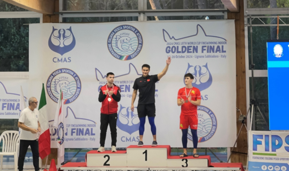 និស្សិតសាកលវិទ្យាល័យក្វាងស៊ីលោក Guan Hanzhi បានឈ្នះមេដាយមាសវគ្គផ្ដាច់ព្រ័តក្នុងកម្មវិធី CMAS 18th World Cup Finswimming Indoor Golden