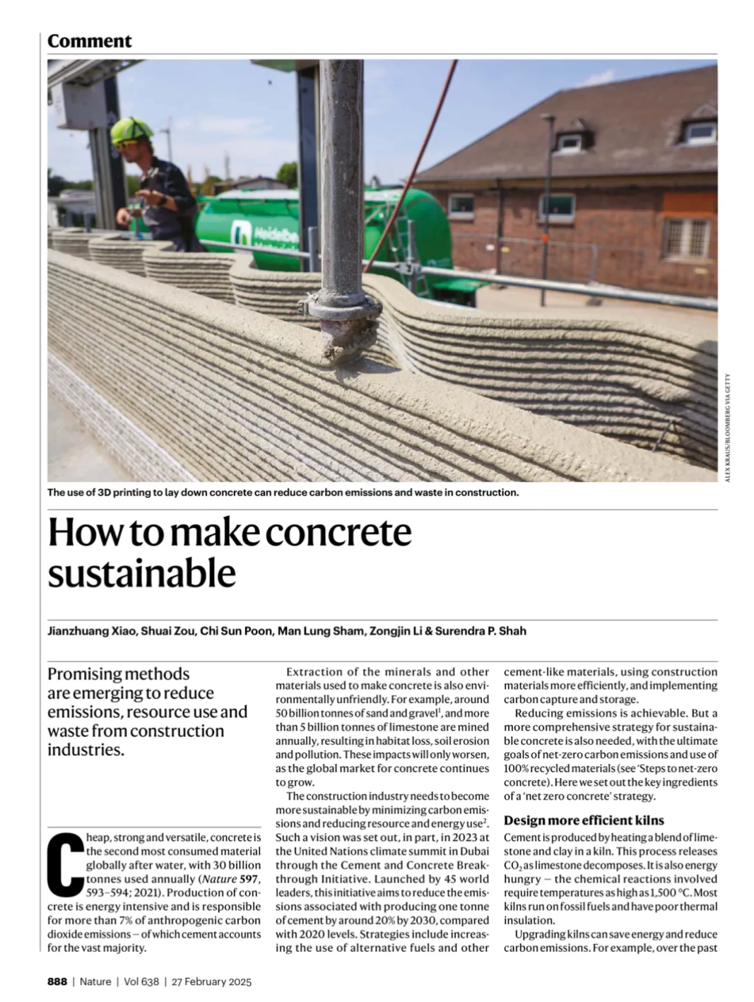 Prof. Dr. Xiao Jianzhuang's Article How to Make Concrete Sustainable Published in Nature