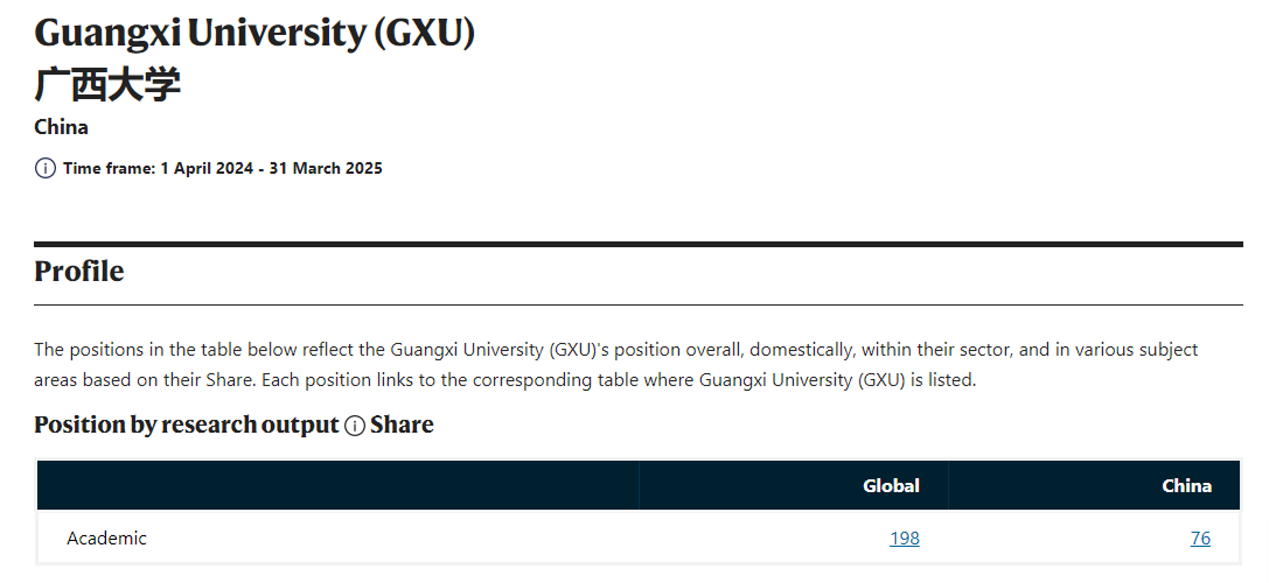 Universiti Guangxi Menerobos ke dalam 200 Teratas Global dalam Indeks Alam Semula Jadi 2025 (Nature)