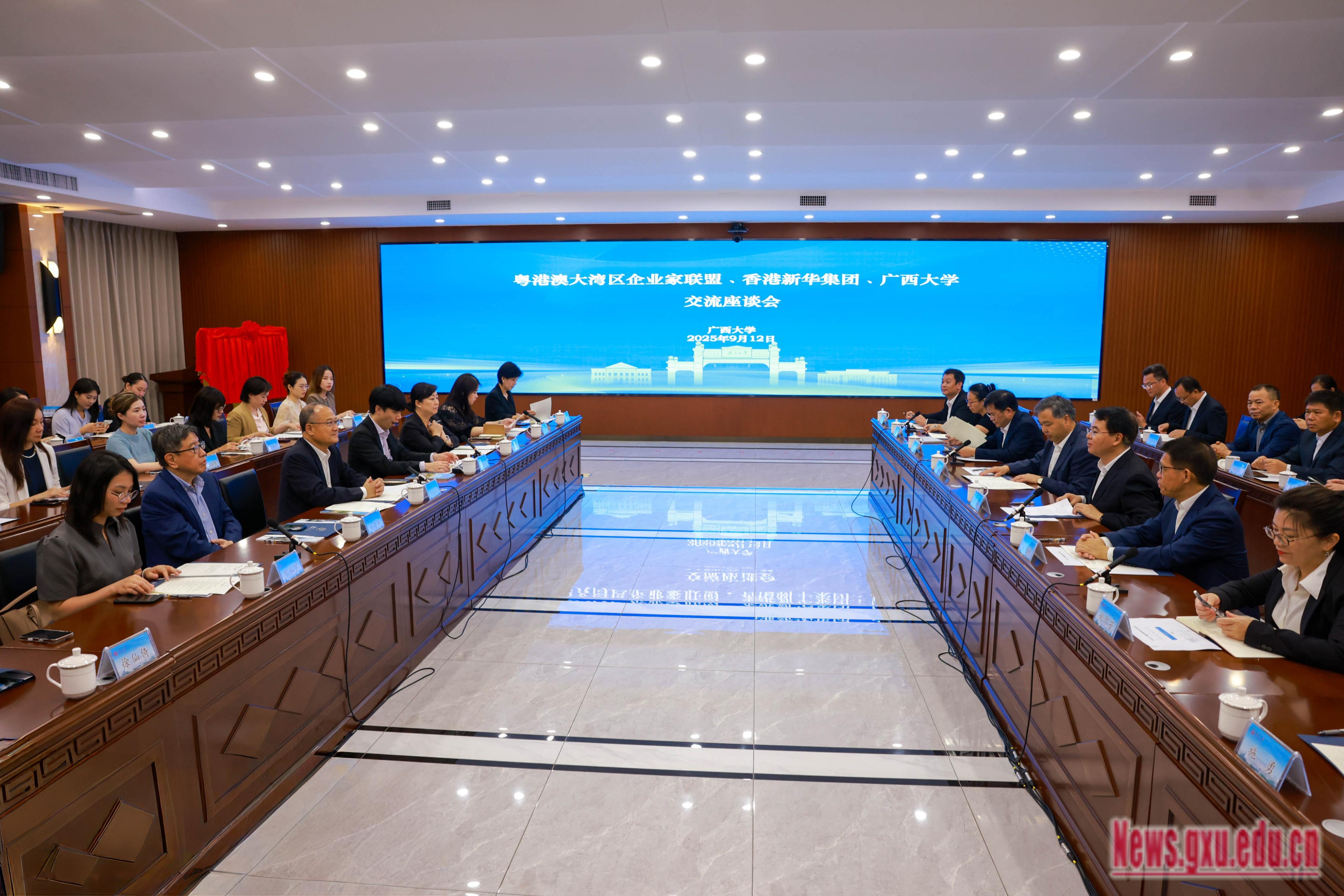 Ông Thái Quán Thâm, Chủ tịch Liên minh Doanh nhân Vùng Vịnh Quảng Đông - Hồng Kông - Ma Cao, Chủ tịch Tập đoàn Tân Hoa Hồng Kông dẫn đoàn đến thăm Đại học Quảng Tây