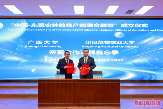 Vào ngày 20 tháng 12, lễ thành lập "Liên minh hội nhập giáo dục-công nghiệp giáo dục nông lâm nghiệp Trung Quốc-ASEAN" và Hội thảo phát triển hội nhập giáo dục- công nghiệp nông lâm nghiệp Trung Quốc-ASEAN lần thứ nhất đã được tổ chức tại trường của chúng tôi. Phó Bí thư Đảng ủy, Hiệu trưởng Đại học Quảng Tây Hàn Lâm Hải đã tham dự cuộc họp và có bài phát biểu.phó bí thư tổ Đảng, phó giám đốc Sở Giáo dục Khu tự trị dân tộc Choang Quảng Tây Diêm Bính Thìn, kỹ sư nông nghệ Sở Nông nghiệp và Nông thôn Khu tự trị dân tộc Choang Quảng Tây Tả Minh, vàtuần thị viên cấp II của Cục Lâm nghiệp Khu tự trị dân tộc Choang Quảng Tây Tưởng Quế Hùng đã tham dự cuộc họp và lần lượt có bài phát biểu. Tiêu Kiến Trang, phó hiệu trưởng Đại học Quảng Tây đã tham dự cuộc họp, Phùng Gia Huân, phó hiệu Đại học Quảng Tây chủ trì cuộc họp.