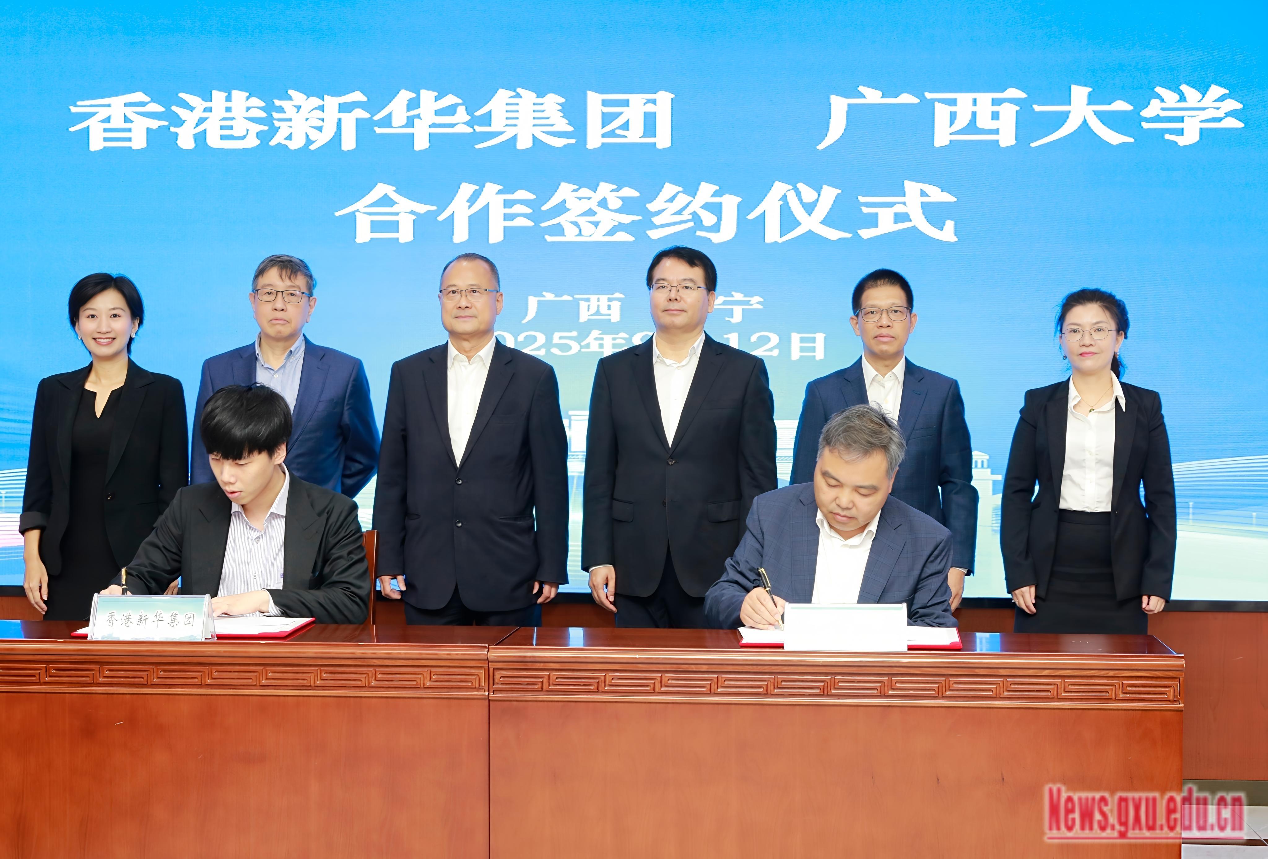 Sau cuộc họp, Phó Hiệu trưởng Tiêu Kiến Trang và ông Thái Trác Tư, Phó Chủ tịch điều hành Liên minh Doanh nhân Vùng Vịnh Quảng Đông - Hồng Kông - Ma Cao, Chủ tịch Khu vực Đông Nam Á của Tập đoàn Tân Hoa thay mặt hai bên ký kết “Thỏa thuận hợp tác giữa Tập đoàn Tân Hoa Hồng Kông và Đại học Quảng Tây”. Ông Thái Quán Thâm và Bí thư Lý Quốc Trung chứng kiến lễ ký kết và cắt băng khánh thành “Trung tâm Hợp tác ASEAN Thái Quán Thâm” tại trường Đại học Quảng Tây.