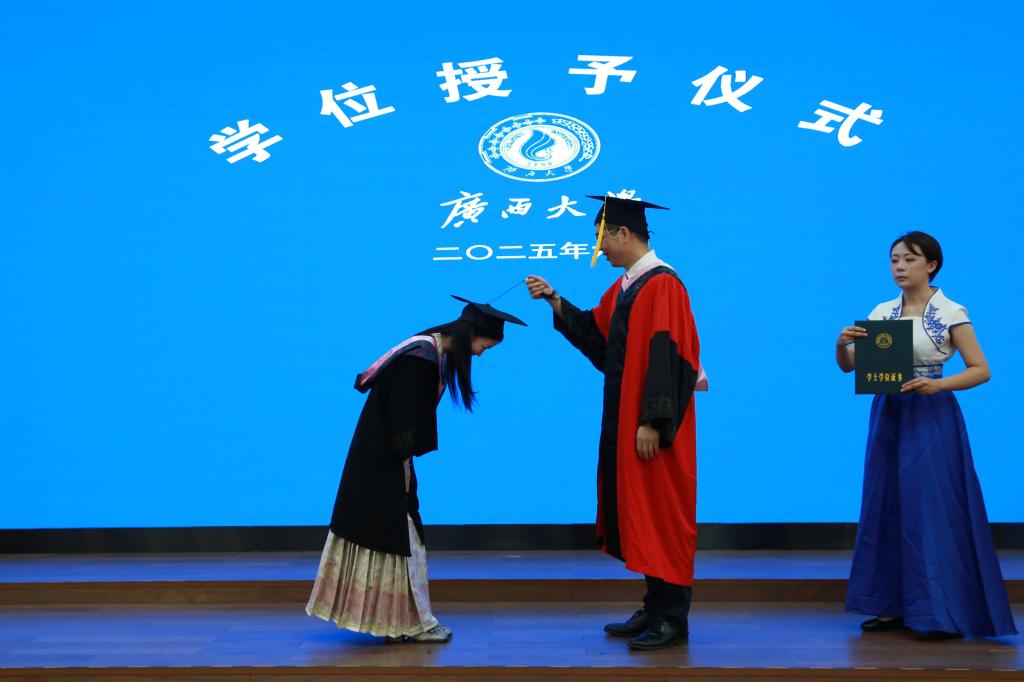 ဇွန်လ ၂၄ ရက်နေ့တွင်ကျွန်ုပ်တို့၏ကျောင်း GXU တွင် ၂၀၂၅ ခုနှစ် အတန်းမှဘွဲ့ရ ၉၇၇၃ ဦး (ဘွဲ့ကြို ၅၀၁၃၊ မဟာကျောင်းသား ၄၅၃၈ နှင့် ပါရဂူကျောင်းသား ၂၂၂ အပါအဝင်) အတွက် ဘွဲ့နှင်းသဘင်အခမ်းအနားနှင့် ဘွဲ့ချီးမြှင့်ပွဲအခမ်းအနားကို အနောက်ဘက် ကျောင်းဝင်း အားကစားကွင်း၌ ကျင်းပခဲ့ပါသည်။ တက္ကသိုလ်ပါတီအတွင်းရေးမှူးနှင့် တက္ကသိုလ်ဘွဲ့အကဲဖြတ်ရေးကော်မတီဥက္ကဋ္ဌ Mr.Li Guozhong ၊ပညာရေးဝန်ကြီးဌာန၏ ပါတီဆက်သွယ်ရေးမှူး Mr.Li Jibing၊ တရုတ်အင်ဂျင်နီယာအကယ်ဒမီ၏ ပညာရပ်ကျွမ်းကျင်သူနှင့် မြို့ပြအင်ဂျင်နီယာနှင့် ဗိသုကာကျောင်းမှ ပါမောက္ခ Mr.Zheng Jielian၊ တရုတ်အင်ဂျင်နီယာအကယ်ဒမီ၏ ပညာရပ်ကျွမ်းကျင်သူနှင့် အသေးစားစက်မှုလုပ်ငန်းနှင့် အစားအသောက်အင်ဂျင်နီယာကျောင်းမှ ပါမောက္ခ Mr.Wang Shuangfei၊ကျောင်းခေါင်းဆောင်များ၊ ကျောင်းဘွဲ့အကဲဖြတ်ရေးကော်မတီဝင်များ၊ နာမည်ကြီး ပညာရှင်များ၊ ဆရာ၊ ဆရာမများနှင့် ဝန်ထမ်းများနှင့် ကျောင်းသားဟောင်းများ အပါအဝင် ကျောင်း၏ ပါတီကော်မတီနှင့် ဒုတိယဥက္ကဋ္ဌ Mr.Liu Xiang တို့က အခမ်းအနားသို့ တက်ရောက်ကြသည်။