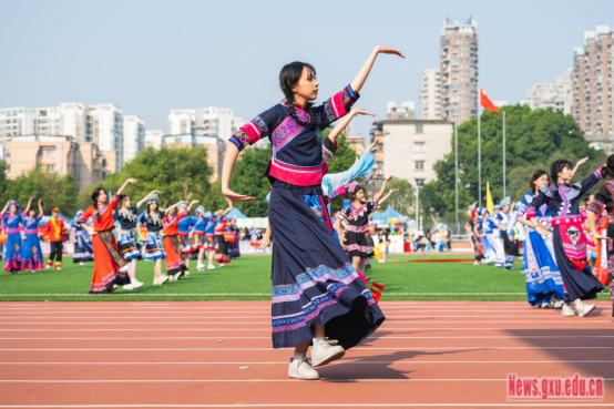 ကျောင်းသားများသည် အရောင်စုံလင်စွာအလှဆင်ထားသော လူမျိုးစုဝတ်စုံများစွာဝတ်ဆင်ပြီး စည်းချက်ညီစွာ တိုင်းရင်းသား ဝါးအကကို ကခုန်ကြသည်။ ၎င်းက လူမျိုးစုယဉ်ကျေးမှု၏ ဆွဲဆောင်မှုကို ဖော်ပြပေးသည်။ ခြင်္သေ့အကများနှင့် နဂါး အကများကို ပေါင်းစပ်ဖျော်ဖြေပေးခြင်းဖြင့် ပရိသတ်ထံမှ အားပေးမှုများကို ရရှိခဲ့သည်။ "Happiness Folk Song" သီချင်း၏ ရွှင်လန်းသောသံစဉ်ဖြင့် လူမျိုးစုဝတ်စုံများဝတ်ဆင်ထားသော ကျောင်းသား များရာနှင့်အတူ တစ်ပြိုင်နက်တည်းကကြသည်။ ၎င်းက မျိုးစုံယဉ်ကျေးမှုမှ စည်းလုံးညီညွှတ်မှုကို အသက်ဝင်အောင်ဖော်ပြပြီး လူမျိုးရေးညီညွတ်မှု၏ စွမ်းအားကိုကိုယ်စားပြုသည်။