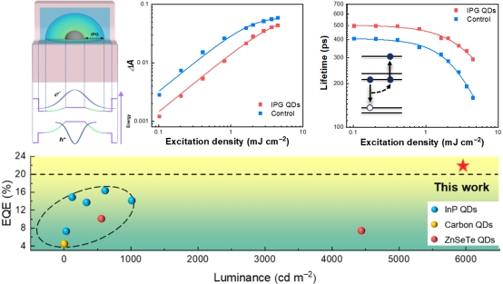 With the rapid advancement of display technologies, QLEDs have emerged as strong contenders for next-generation high-performance displays. In recent years, eco-friendly quantum dots free of heavy metals have garnered widespread attention due to environmental concerns and the demand for large-scale commercialization. However, while significant strides have been made in red and blue eco-friendly QLEDs, green QLEDs remain hindered by technical bottlenecks, primarily due to their high non-radiative recombination rates, particularly Auger recombination, which limits their external quantum efficiency (EQE) to below 20%, severely impeding commercial viability.