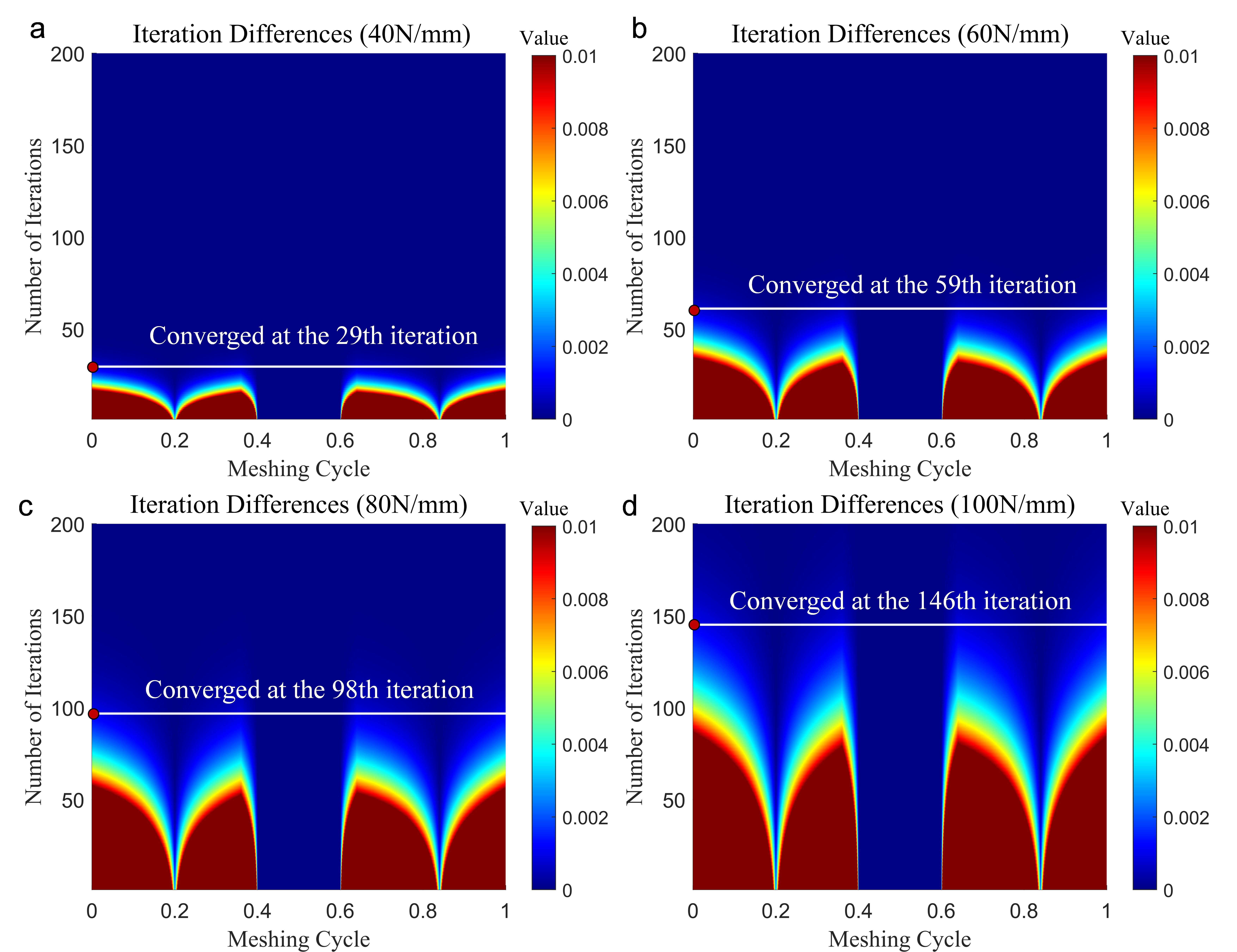 The team proposed an innovative iterative calculation method for time-varying meshing stiffness of face gear pairs. This method couples tooth surface slice analysis with the potential energy method, enabling precise calculation of tooth surface deformation under working conditions. By employing an iterative algorithm to optimize calculation parameters, the team achieved accurate solutions for time-varying meshing stiffness. This research provides an efficient and precise calculation method for the field of gear transmission, significantly improving the accuracy and efficiency of meshing stiffness calculations. It also offers critical technical support and theoretical foundations for optimizing the performance of face gear transmission systems.