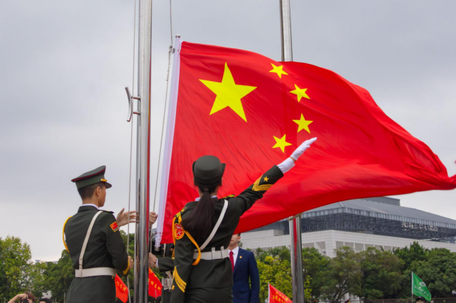 ສະເຫຼີມສະຫຼອງວັນຄ້າຍວັນເກີດຂອງຈີນແລະປະກອບບົດທີ່ງົດງາມຮ່ວມກັນ - GXU ຈັດພິທີວາງທຸງໃນວັນຊາດ