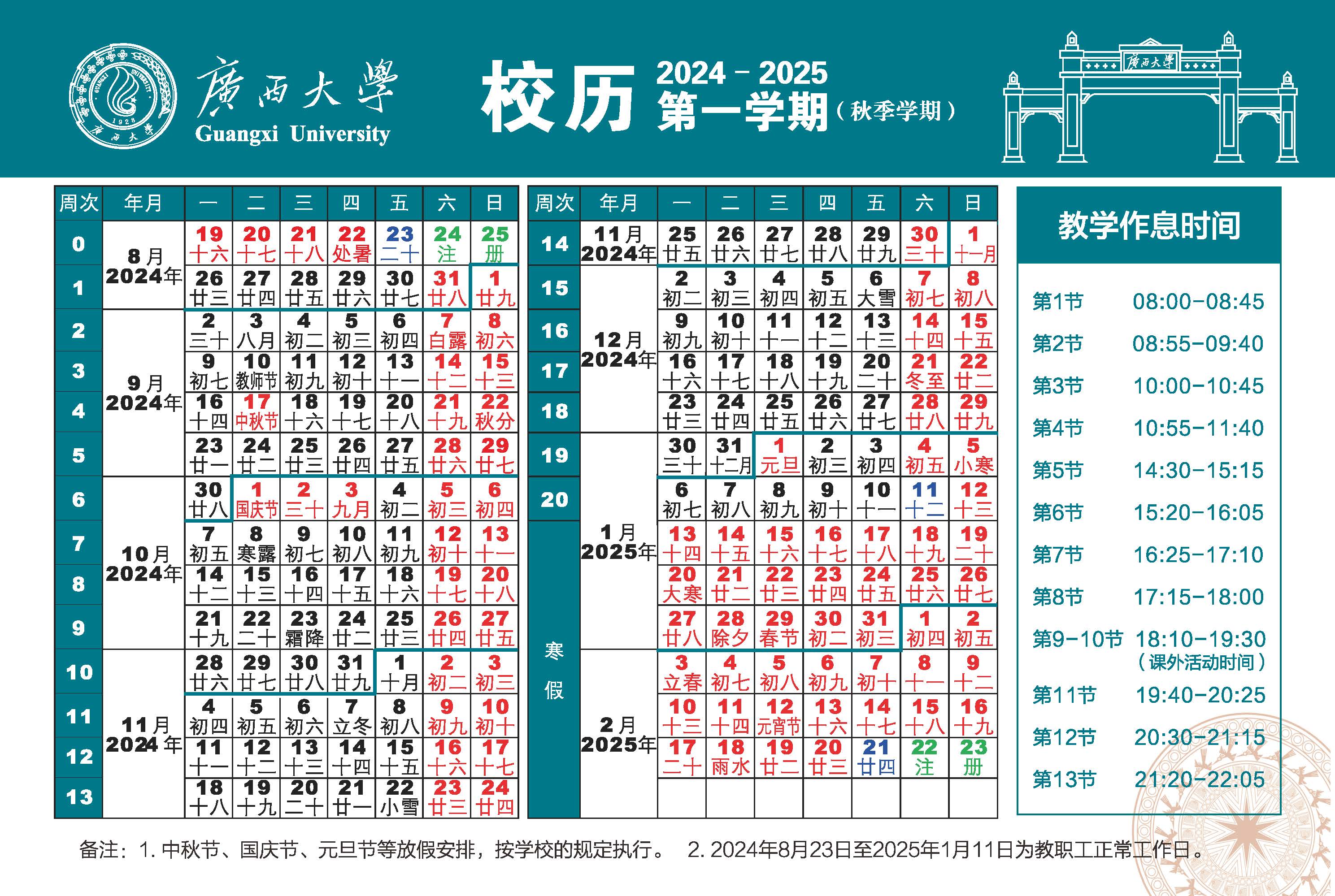 ປະຕິທິນການສຶກສາ GXU