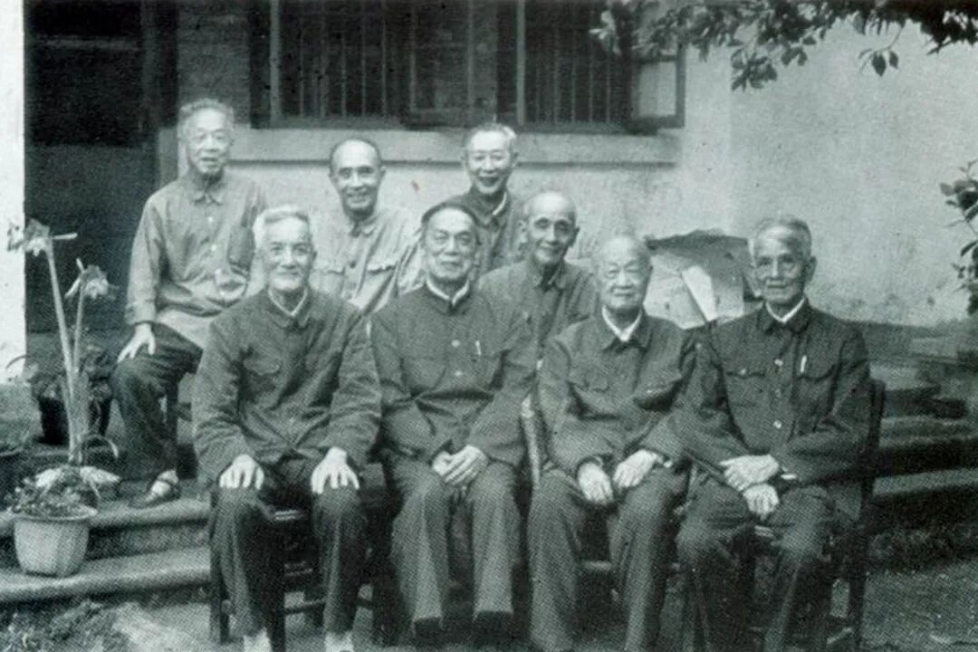 欧冠联赛官网1958年“复校八老”合影(左起依次为蒋刚、尹政、谭固周、余克缙、周行、杨溪如、郑建宣、杭维翰)。