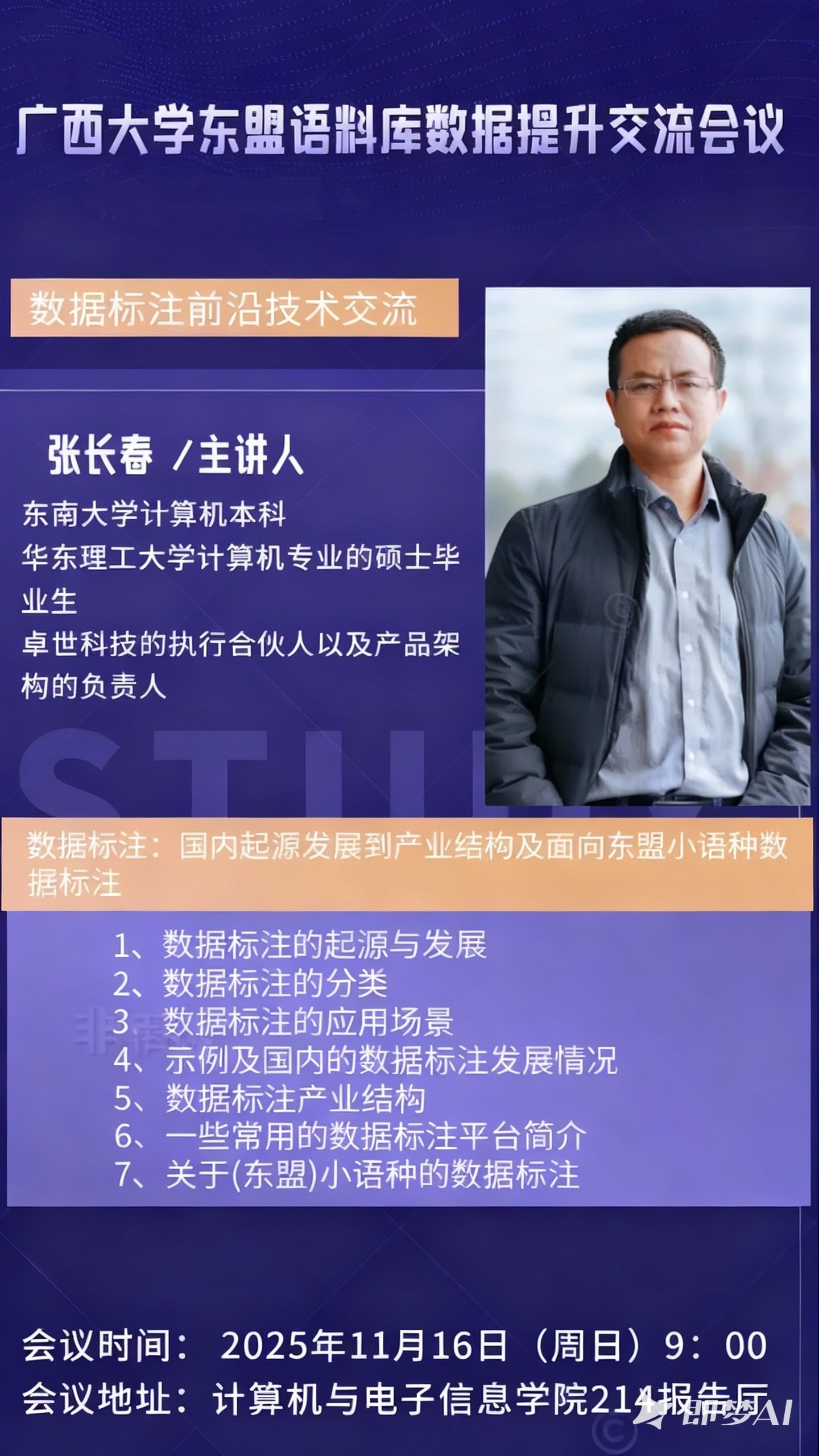 “计电讲坛”学术报告系列活动第47期:从国内起源发展到产业结构及面向东盟小语种数据标注
