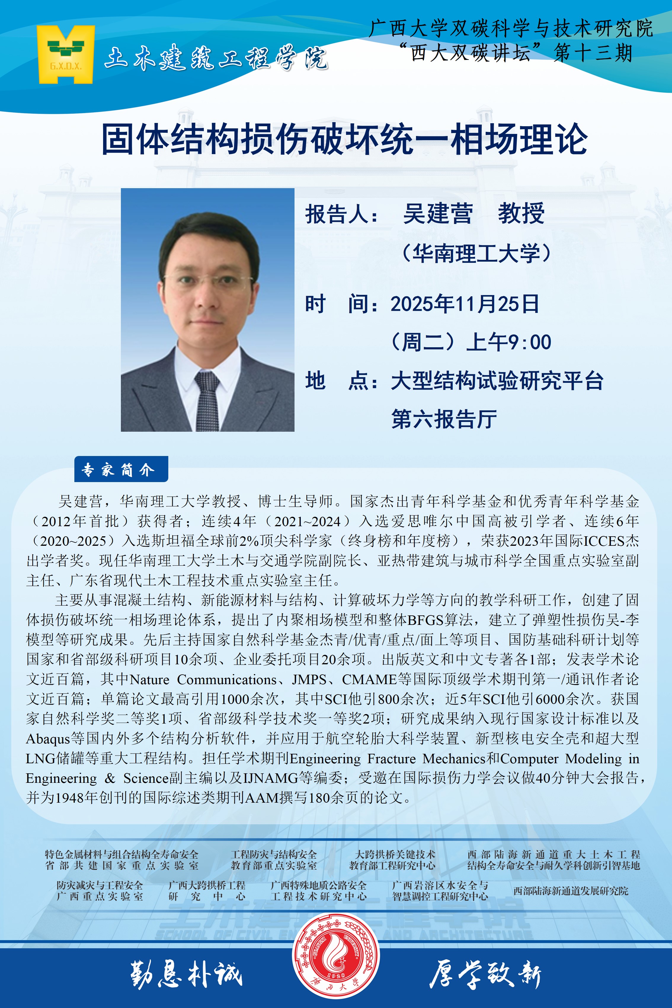 土木建筑工程学院、欧冠联赛官网双碳科学与技术研究院学术报告:固体结构损伤破坏统一相场理论