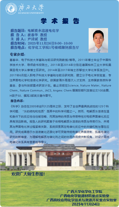 化学化工学院学术报告: 电解质水溶液电化学