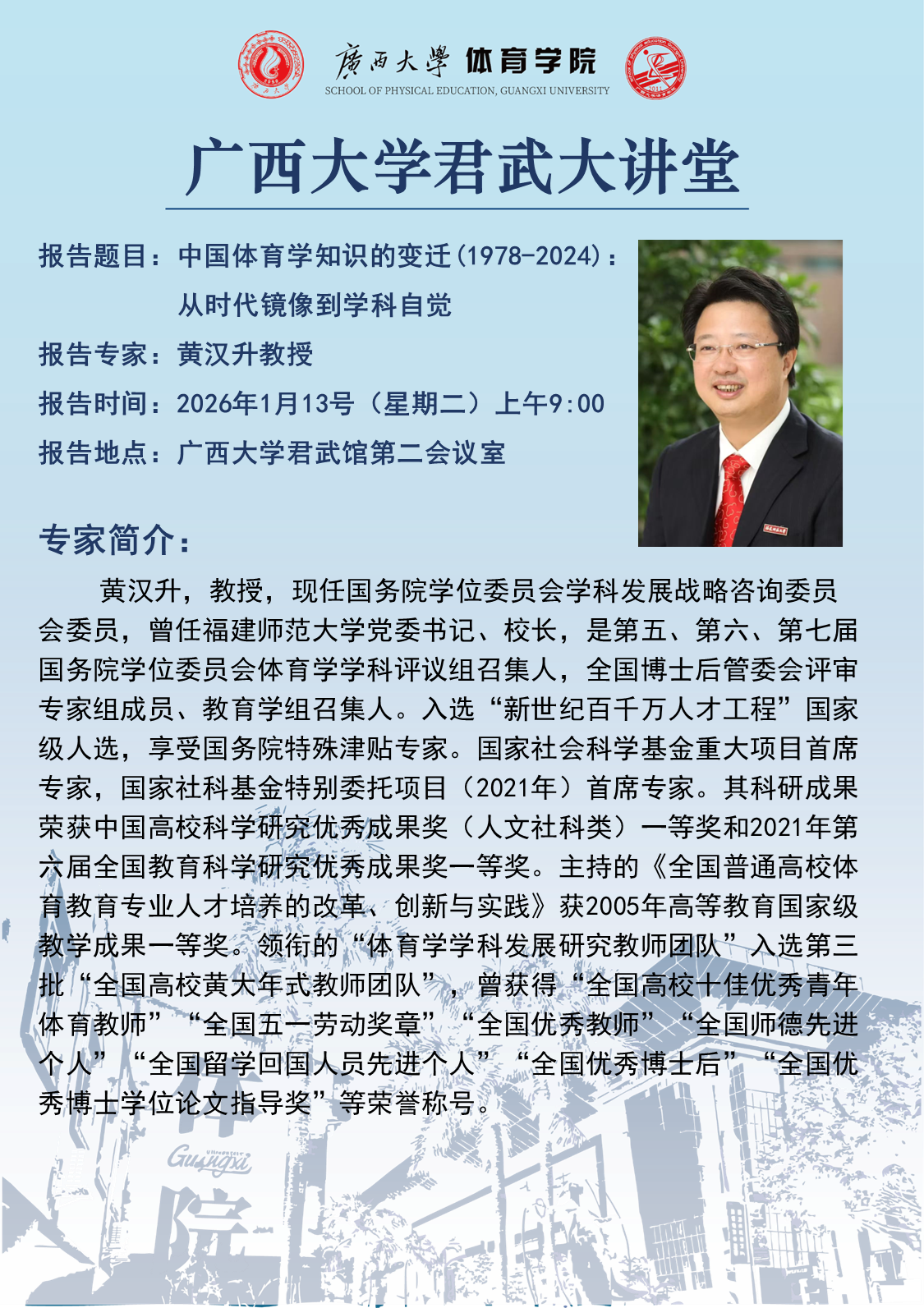 君武大讲坛:中国体育学知识的变迁(1978-2024): 从时代镜像到学科自觉