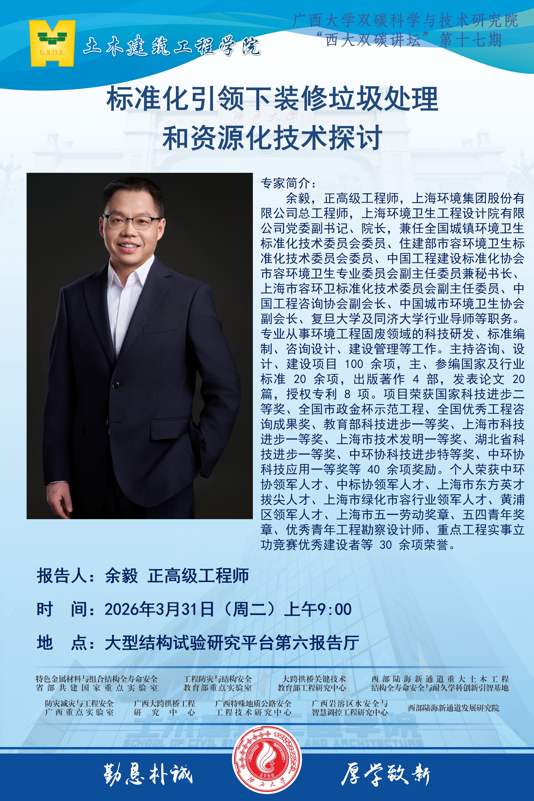 土木建筑工程学院、欧冠联赛官网双碳科学与技术研究院学术报告:标准化引领下装修垃圾处理和资源化技术探讨