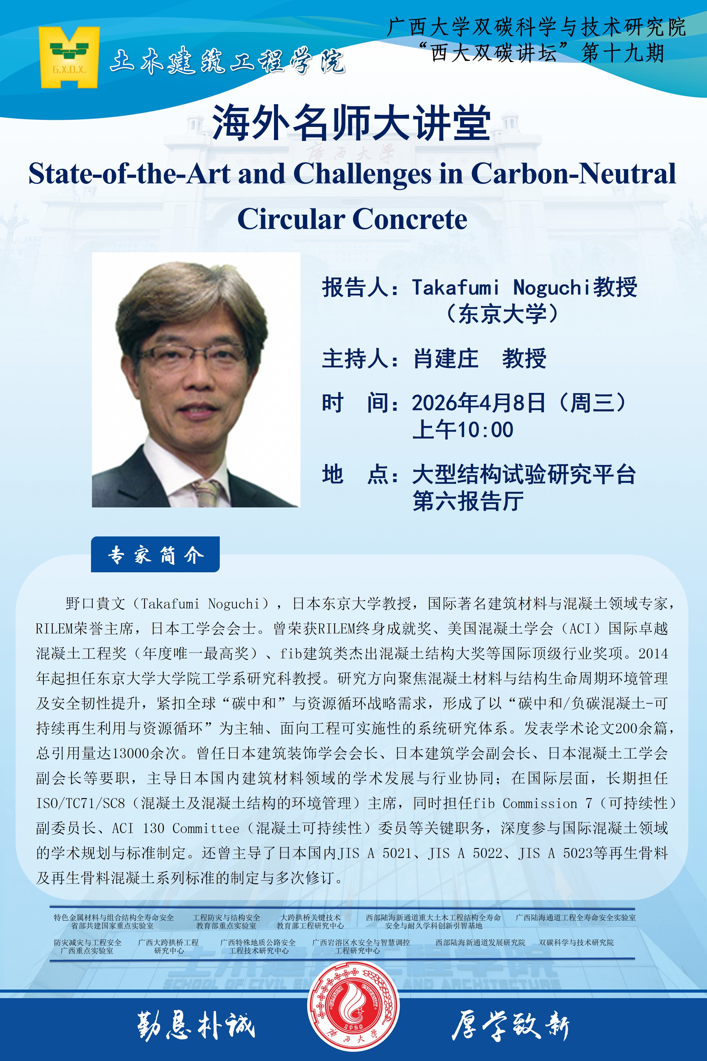 下一条:海外名师大讲堂、土木建筑工程学院学术报告: Valorisation of waste materials for construction by accelerated carbonation